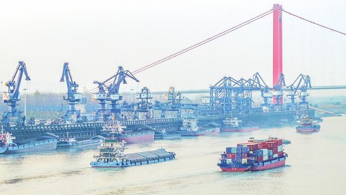 12月16日,黄石新港多式联运作业现场,铁轨旁集装箱整齐码放,龙门吊等设备有序运转,远处的跨江大桥和港口...[详细]