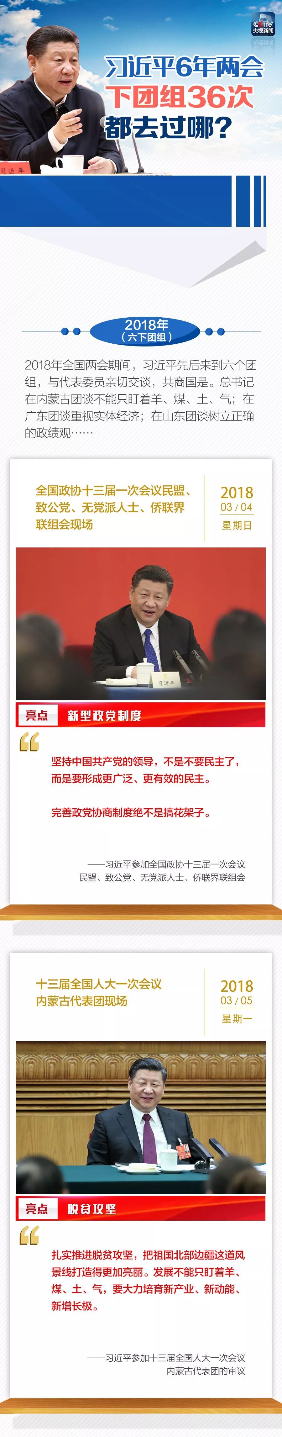 2019年全国两会来了。回顾2013-2018年全国两会,习近平先后36次“下团组”,和代表委员亲切交流、共商国是,讲话涉及科技创新、脱贫攻坚、深化改革、作风建设等。今天,一张图回顾习近平的两会时间⬇️