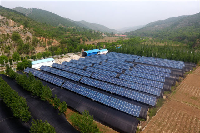 这是山西省平顺县西沟村的光伏扶贫电站(2018年5月18日无人机拍摄)。新华社记者 詹彦 摄