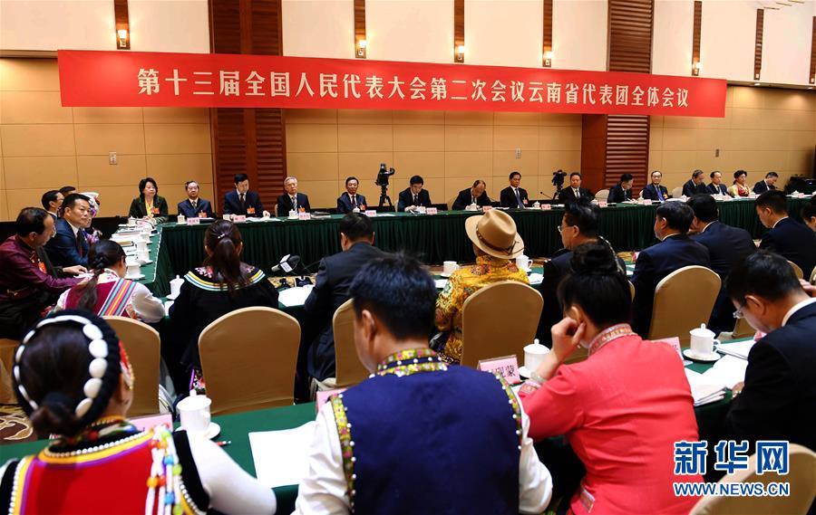 3月7日,十三届全国人大二次会议云南代表团全体会议向媒体开放。 新华社记者 杨宗友 摄