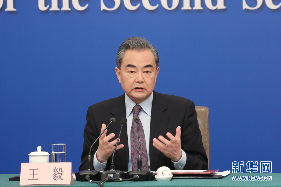 十三届全国人大二次会议新闻中心3月8日10时在梅地亚中心新闻发布厅举行记者会,邀请国务委员兼外交部长王毅就“中国外交政策和对外关系”相关问题回答中外记者提问。图为王毅回答记者提问。新华网/中国政府网 陈杰 摄