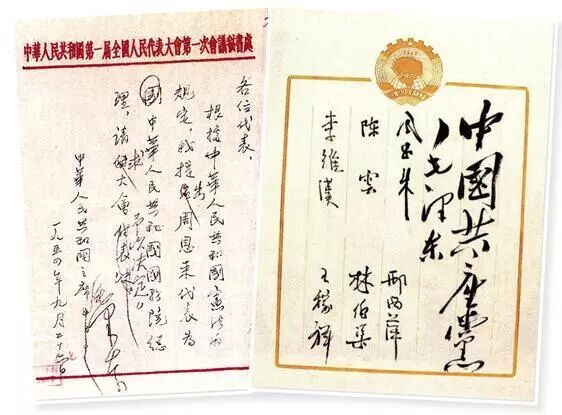 毛泽东主席向大会提名周恩来为国务院总理的建议书(左)