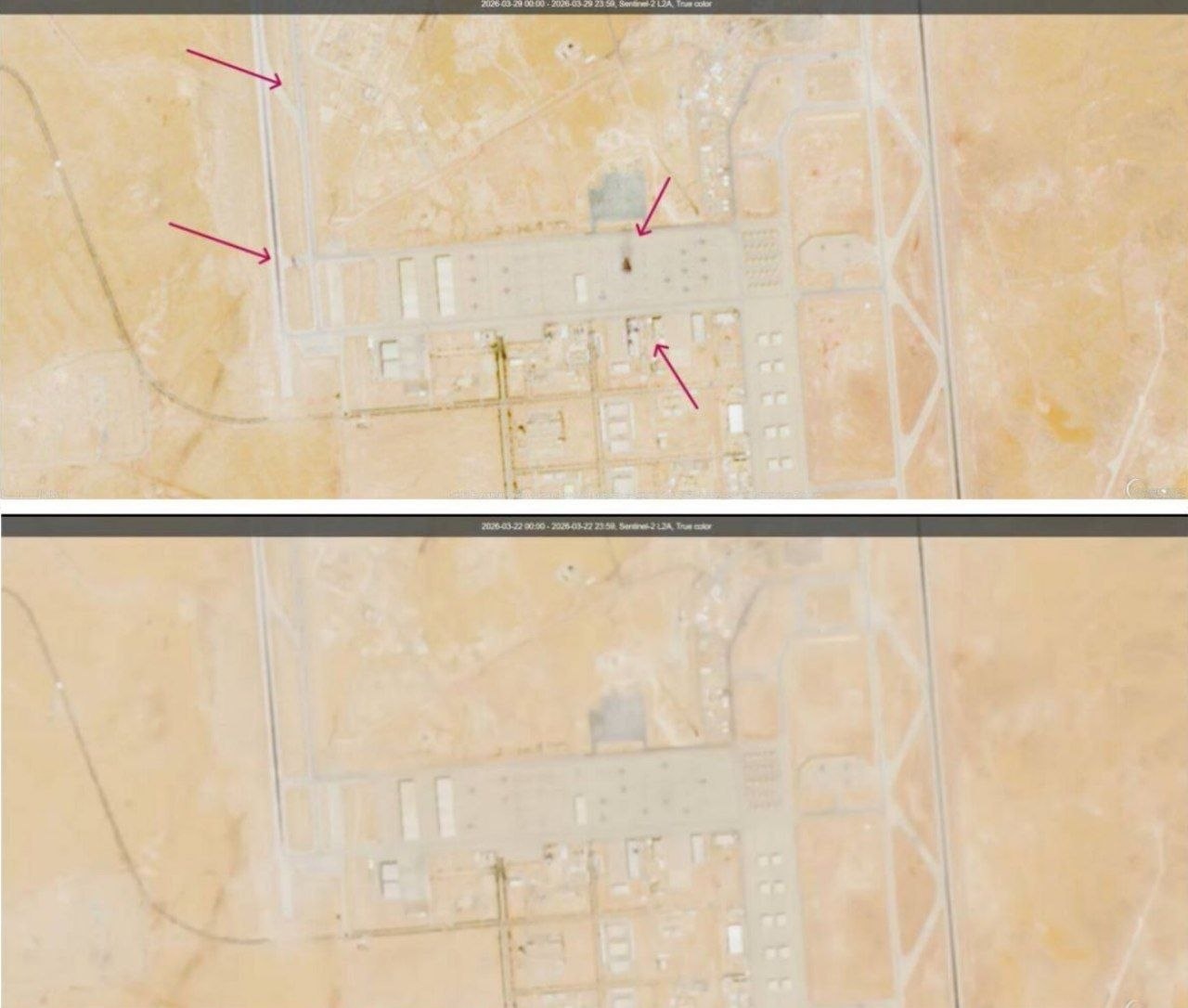 伊朗方面发布打击沙特苏丹王子空军基地相关设施前后卫星对比图当地时间3月30日,伊朗方面发布卫星对比图,...[详细]