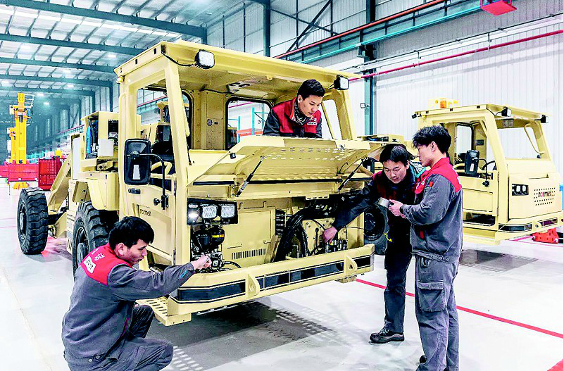 图为:2月20日,工作人员对井下矿山多功能服务车进行出厂前的调试。(湖北日报全媒记者梅涛摄)