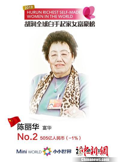 榜单的前十位中,共有4位白手起家女富豪来自中国,除吴亚军、陈丽华外,玖龙纸业(控股)有限公司董事长张茵、恒力股份董事长范红卫分列第六和第十位。