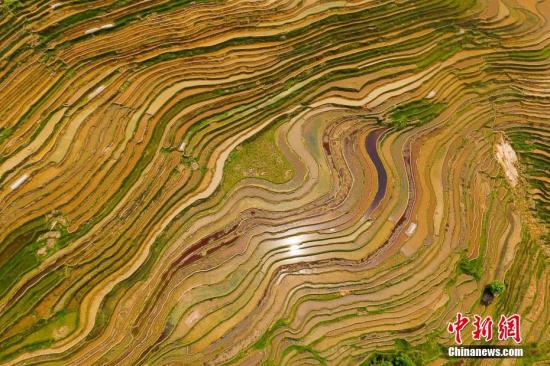 资料图:4月19日,航拍贵州省从江县加榜梯田美景,宛如大地指纹。中新社记者 贺俊怡 摄