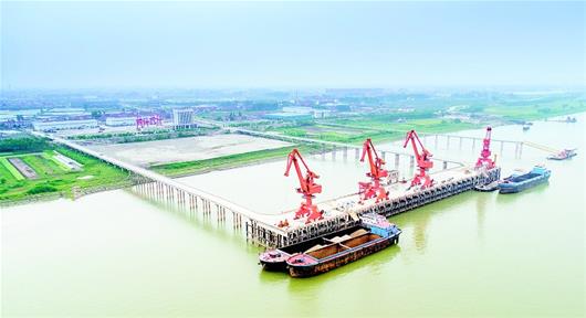 小池镇党委副书记刘斌介绍,小池港占据独特的区域优势,长江黄金水道、沪蓉高速、福银高速、京九铁路等多条交通动脉汇集于此,小池港也由此成为铁水公多式联运的重要节点。