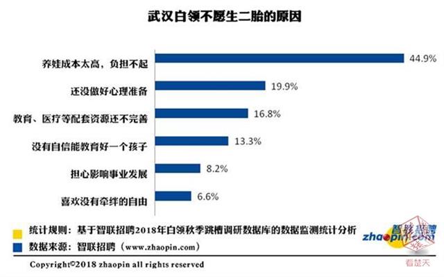根据智联招聘调查结果显示,超6成武汉白领不愿生二胎,在37个城市中排名第12位,明确表示会生二胎的仅为5.7%。