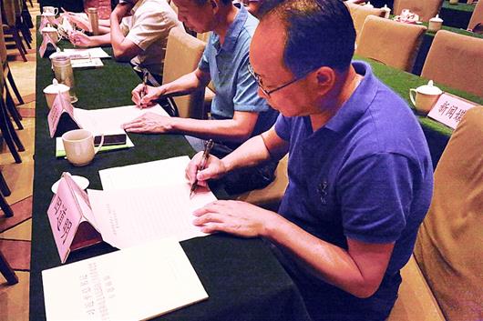 图为:为强化委员的履职意识,全体委员签署了委员履职承诺书。在委员培训班开班仪式上,委员代表宣读委员履职承诺书。履职承诺书系省政协历史上首次采用。图为委员签署承诺书。