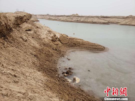图为黄河河道内非法挖沙后留下的坑塘。 齐永 摄