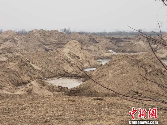 图为黄河河道内被非法采沙者挖得沟沟壑壑。 齐永 摄