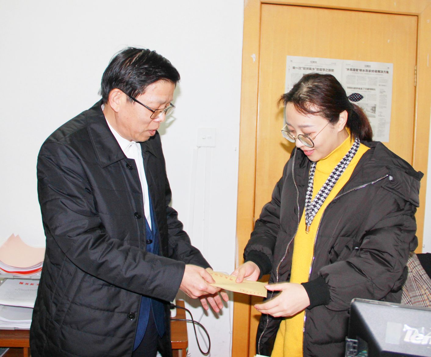 李述武给困难党员送上慰问金,并鼓励她勇敢克服困难,乐观生活,党组织和局机关会一如既往给予温暖与帮助。
