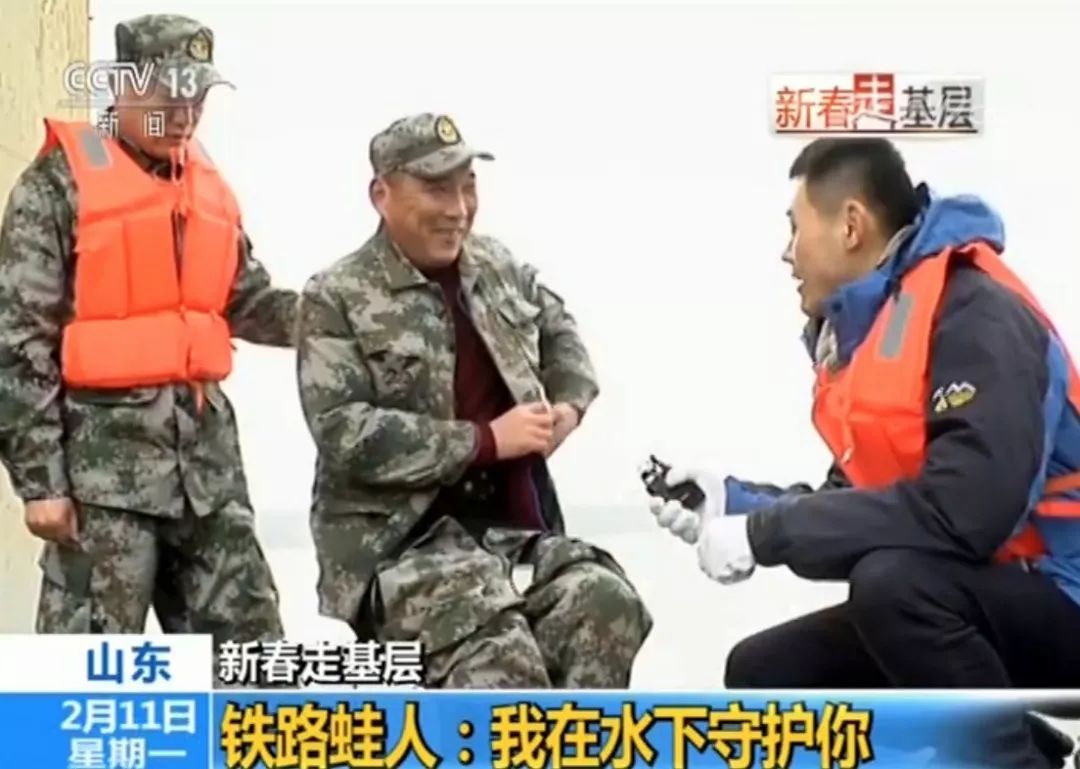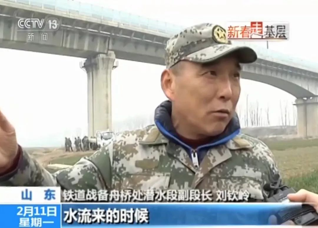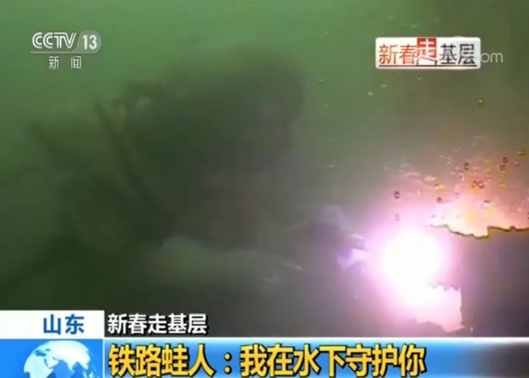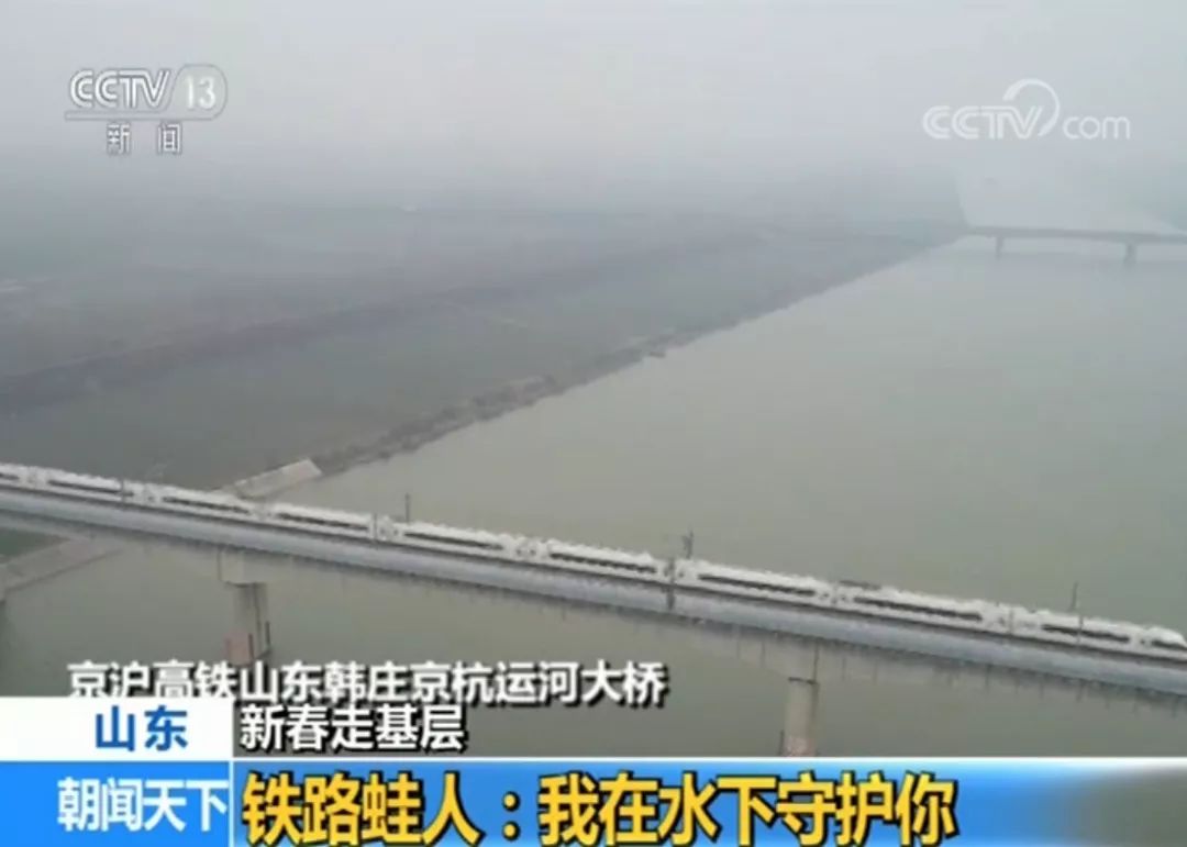 刘钦岭师徒在冰冷的水下探摸,当最终确认桥墩正常时,一列高铁正好从这里通过。半个小时后,师徒二人返回了水面,这是冬季下水作业的最长时限。而此时,两人的双手,已经冻得失去了知觉。