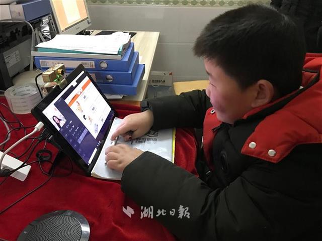 父亲去世、母亲改嫁,10岁的李齐天在工作队的帮助下,免费接受远程教育。 记者雷闯