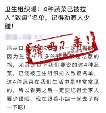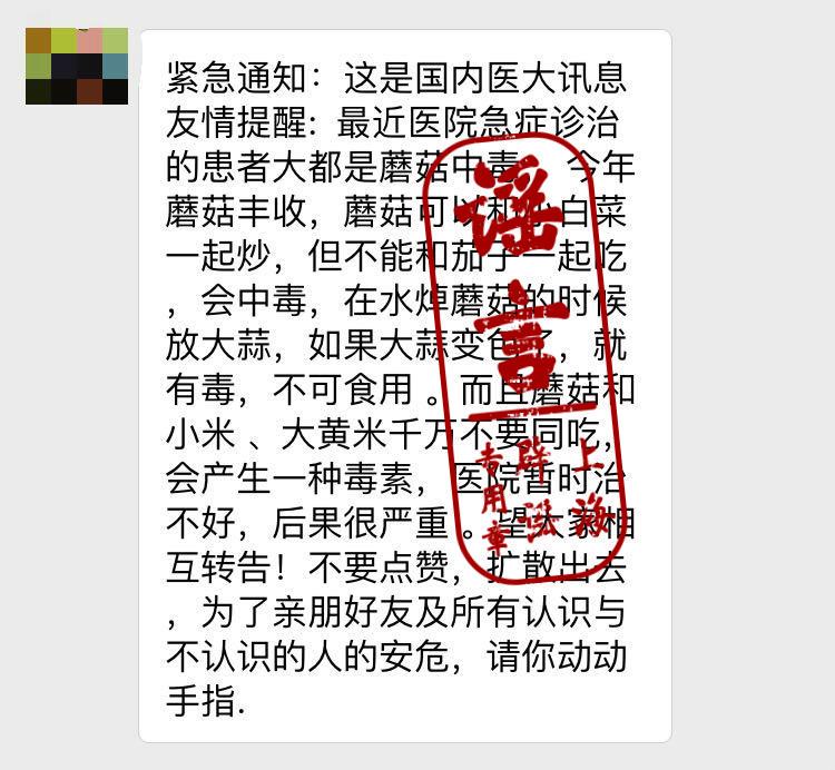 网传谣言,图中的蘑菇与大蒜、小米等的说法也是不对的