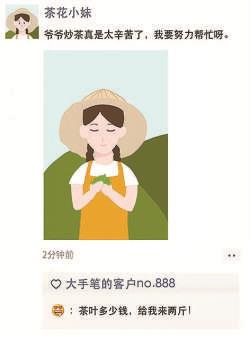 他们先是伪装成年轻漂亮的女孩,与“客户”聊天培养感情,并配发朋友圈日常工作、生活的场景图片;接着,哭诉说被男友无情抛弃,悲痛欲绝,以博得同情;失恋后,回到外公家的茶山,帮忙炒茶、采茶等,还搭配有手部受伤的情节,继续博取“客户”的同情心;最后,再编造出亲生母亲去世,自己与继母争夺茶庄经营权,条件是必须在限期内达到一定营业额,否则继母就要卖掉茶庄。经过艰辛的市场奔波,女孩谎称营业额还差数千元,恳求“客户”购买帮自己达成心愿。