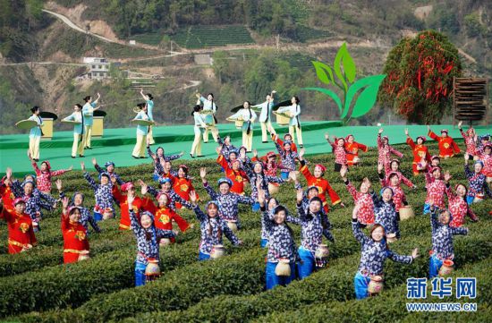 3月31日,表演者在紫阳县向阳镇合垭村一处茶园表演实景剧《清明已煮紫阳茶》。 时下,陕西安康市紫阳县进入春茶采摘期,当地举办系列文化旅游活动,吸引游客上茶山游玩,享受田园惬意。近年来,紫阳县依托茶园基地建设着力打造生态观光园,积极推动茶旅融合发展,取得良好效果。 新华社记者 邵瑞 摄