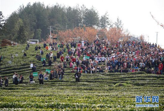 3月31日,观众在紫阳县向阳镇合垭村一处茶园观看实景演出。 时下,陕西安康市紫阳县进入春茶采摘期,当地举办系列文化旅游活动,吸引游客上茶山游玩,享受田园惬意。近年来,紫阳县依托茶园基地建设着力打造生态观光园,积极推动茶旅融合发展,取得良好效果。 新华社记者 邵瑞 摄