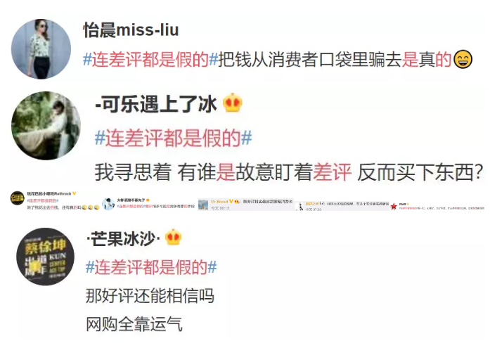 让记者感到惊讶的是刷单不仅仅是刷好评,差评同样可以刷,一位不愿意透露姓名的业内人士对记者说:“连差评都是假的!刷单的人伪造的,目的就是让不明真相的消费者看到这个差评花了很大的力气、很长的篇幅去处理。最后跟消费者之间化干戈为玉帛,从而让消费者相信他的店铺。”