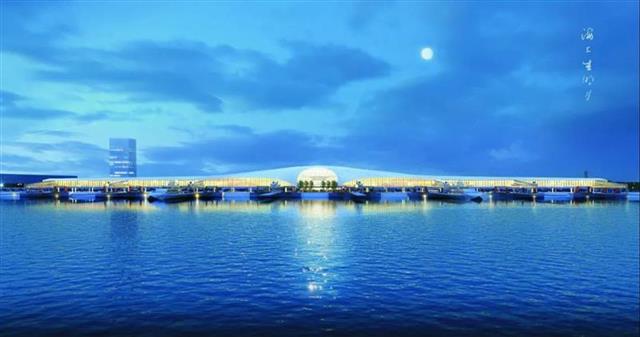徐闻港综合交通枢纽中心总建筑面积77458平方米,地上3层,为框架剪力墙结构+钢网架结构,主要用于旅客候船、港口综合管理等用途。这栋大楼的建筑设计主题为“海上生明月”,枢纽中心正对海口方向,如一只飞翔的海鸥,大楼中间玻璃幕墙是圆月形状。华灯初上时,玻璃幕墙透出璀璨的灯光,在水中的倒影呈现“明月初升”的形象,既能让旅客感受其美好意境,还能体会琼粤“天涯若比邻”的深厚情谊。