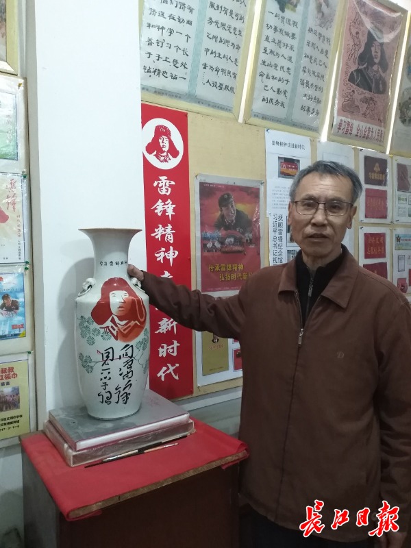 2015年时,他的退休工资不足3000元一个月,但他开开心心地掏出2600元钱,从汉口香港路一藏家手中,购得一对与雷锋有关的瓷瓶。