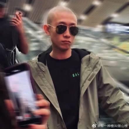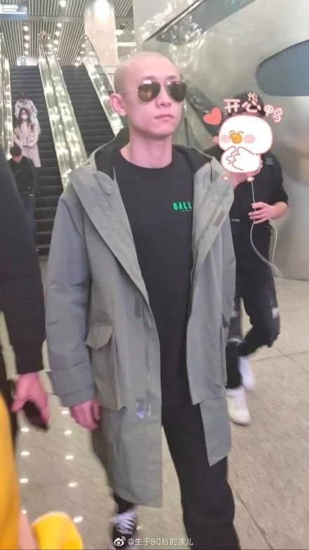 在机场灯光还有闪光灯的照射下,张一山的头闪闪发亮,犹如一颗行走的卤蛋