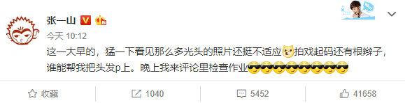 此次张一山的光头造型其实是因为新戏要求。近期有人曝出张一山现身新戏《鹿鼎记》片场的照片,为了角色张一山真的牺牲不小啊。