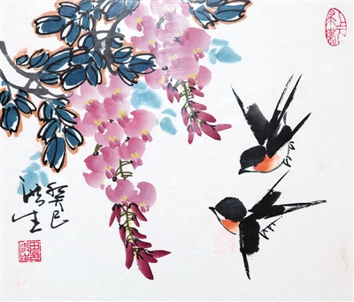 现代作家也一样,对春燕情有独钟,把燕子刻画得细致入微,惟妙惟肖。郑振铎先生的《燕子》,简洁流畅,脍炙人口,经久传颂。在他笔下,青草绿叶、繁花似锦、色彩斑斓的春天里,拥有“一身乌黑光亮的羽毛,一对俊俏轻快的翅膀,加上剪刀似的尾巴”的燕子,斜着身子在阳光下微风中劲捷飞翔的景象,是春天画卷中最诱人的风景,春天交响乐中最动人的乐章。即便是歇脚在电线上,也是乐曲上的“五线谱”,酷肖逼真,奏响了嘹亮悠扬的春曲。