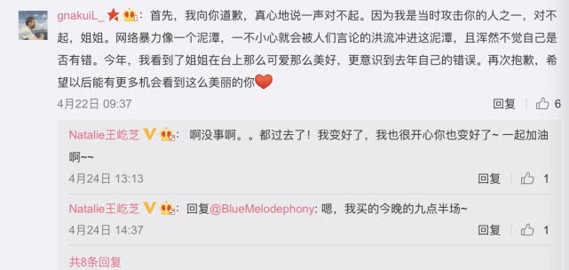 这当然是《复联4》翻译很难挑错的关系,但在另一个角度,也可能是那部分原本容易冲动的漫威粉们,渐渐学会了理解他人与控制自己。去年在《复联3》发布会后被网友攻击得一个月不敢看微博的主持人王屹芝,主持完今年的《复联4》后,同样意外地得到了粉丝们的夸奖。一位去年的攻击者在道歉之外,留言解释之前的心态:“网络暴力像一个泥潭,一不小心就会被人们言论的洪流冲进这泥潭,且浑然不觉自己是否有错。”