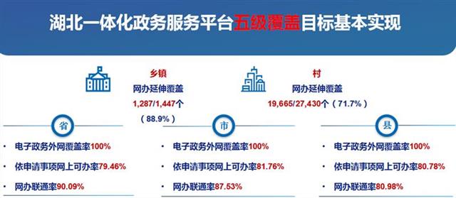 省政务管理办负责人在会上介绍,我省一体化政务服务平台(即湖北省政务服务网)覆盖100%省市县,88.7%乡镇,71.7%村,基本实现“五级覆盖”。也就是说,在部分乡镇、社区,都可登陆政务服务网办理事项。