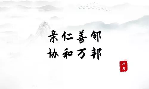 “亲仁善邻”“协和万邦”引申到今天,就是与邻邦之间和睦相处、守望相助,协调不同国家之间的关系,让各个国家都能够相互尊重、相互合作、共同发展。如今各国相互依存度持续增加,只有尊重、包容不同文明的存在,坚持互利合作,纳百家优长,集八方精义,才能与世界各国一道,实现共同发展和共同繁荣。正如习近平所说,“未来之中国,必将以更加开放的姿态拥抱世界、以更有活力的文明成就贡献世界。”这也正是“亲仁善邻”“协和万邦”表达的寓意。
