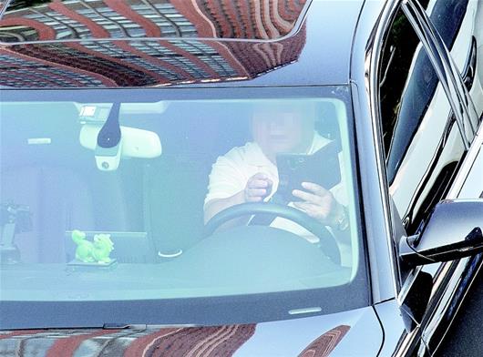 图为:5月27日,武汉市徐东大街辅道,一名司机边开车边看手机。 (湖北日报全媒记者 魏铼 摄)