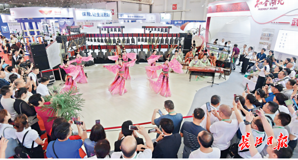 湖北展区,编钟乐舞吸引参观者围观 长江日报记者詹松 摄