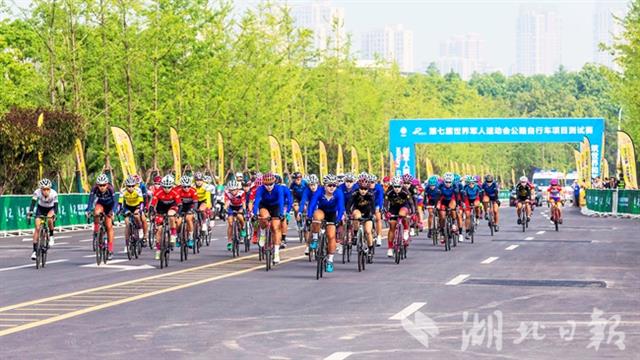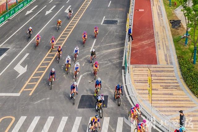 6月20日,武汉军运会公路自行车测试赛在东湖绿道鸣枪开赛。
