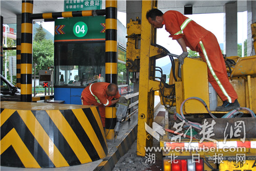 鄂西高速管理处榔坪收费站紧急拆除车道设备。