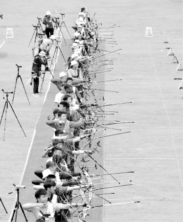长江日报讯(记者汪峥张勇军通讯员孙克亮)25日上午,第七届世界军人运动会射箭项目测试赛暨2019年武汉射箭邀请赛在武汉市蔡甸区射箭馆开幕,共有来自南昌、东莞、云南、浙江、四川、江苏的6支代表队66名运动员及教练参加。此次比赛共设有男女单人、男女团体和混合团体五个比赛项目,赛期持续3天。这也是位于秀丽九真山旁的蔡甸射箭馆首次亮相。