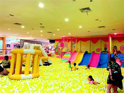 6月29日13时许,青山区某大型商场内,儿童海洋球乐园人声鼎沸。按照游乐场规定,家长和孩子都必须脱鞋穿袜进场。但是湖北日报全媒记者看到,场内部分人光着脚丫。