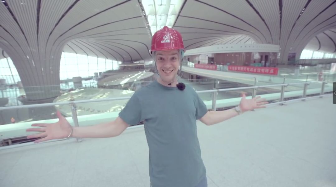 但见证了这座工程奇迹之后,他毫无保留地向网友安利:想看看未来的机场长什么样,就赶紧去中国吧!