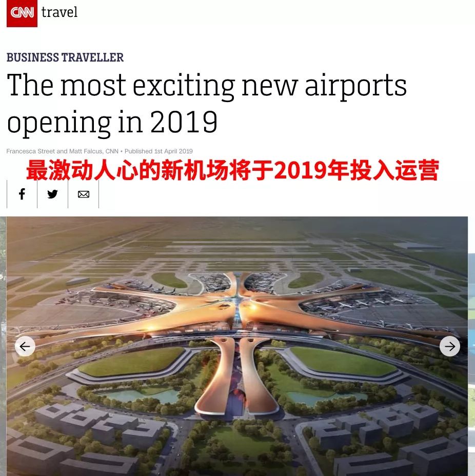 美国有线电视新闻网(CNN)也预测说,中国这座新机场是2019年全世界内最激动人心的建筑了。