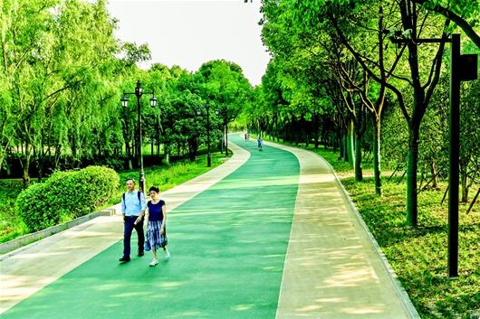 图为:长江主轴左岸的彩色观光步道