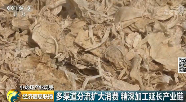 除了不断研发新的小龙虾食品,他们公司近两年也在向精深加工转型,在他们公司的空地上晒满了大片大片的浅白色小龙虾壳。据了解,这些小龙虾壳已经过褪色处理,将进一步加工提取甲壳素,用来制作氨糖,可以用于生产相关保健品、化妆品。提取甲壳素后制作的氨糖一吨的价值接近10万元。