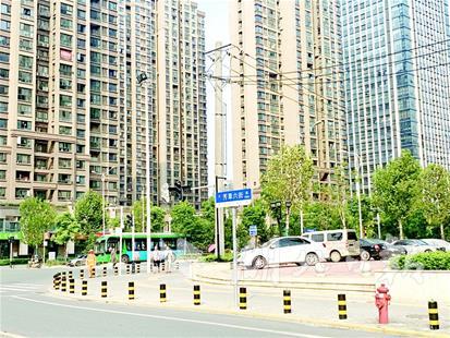 图为芳草六街与梅林西街交会路口重新加固安装了绊马桩