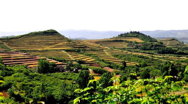 十堰郧阳区加大水土流失综合治理,优美的梯田线条构成了一幅山水田园画