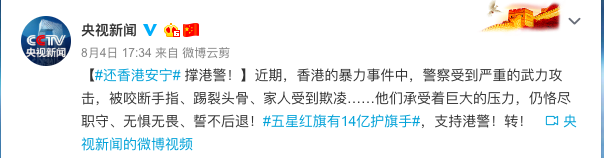 据央视新闻报道,近期,香港的暴力事件中,警察受到严重的武力攻击,被咬断手指、踢裂头骨、家人受到欺凌……
