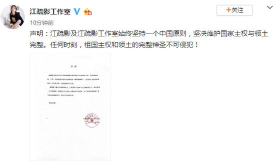 网易娱乐8月13日报道 8月13日,江疏影方宣布已停止与施华洛世奇代言合作:江疏影及江疏影工作室始终坚持一个中国原则,坚决维护国家主权与领土完整。任何时刻,祖国主权和领土的完整神圣不可侵犯!声明中提到,江疏影公司在得知施华洛世奇涉嫌损耗我国国家主权和领土完整一事后,已在第一时间向品牌发出《解约通知函》,并停止与品牌的一切合作关系。
