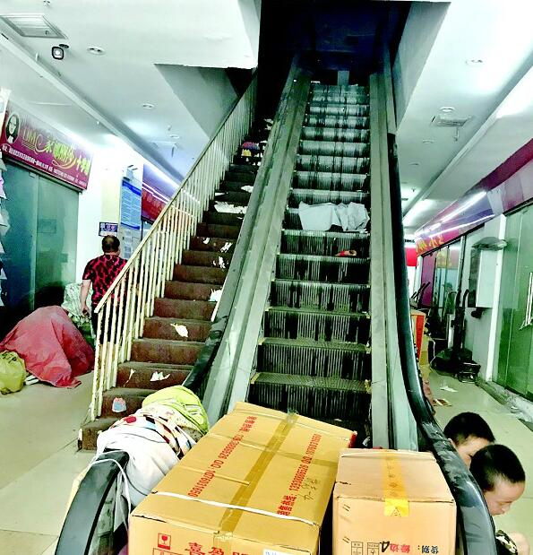 商户表示,从7月31日开始,很多商铺停电,照明、空调均无法使用,无法做生意。原来进出的5个门,时常只有一两个门开着,而主要用于进出和运货的1号门关着,唯一的货运电梯停运,其它手扶电梯也停运。