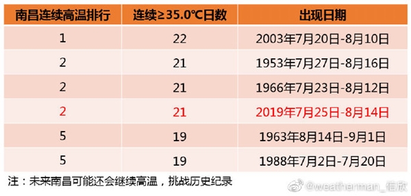 其中,南昌7月25日-8月14日已连续21天高温,为今年以来省会城市的连续高温王,并可能创造当地最长连续高温纪录。高温持久,公众请注意防暑降温。