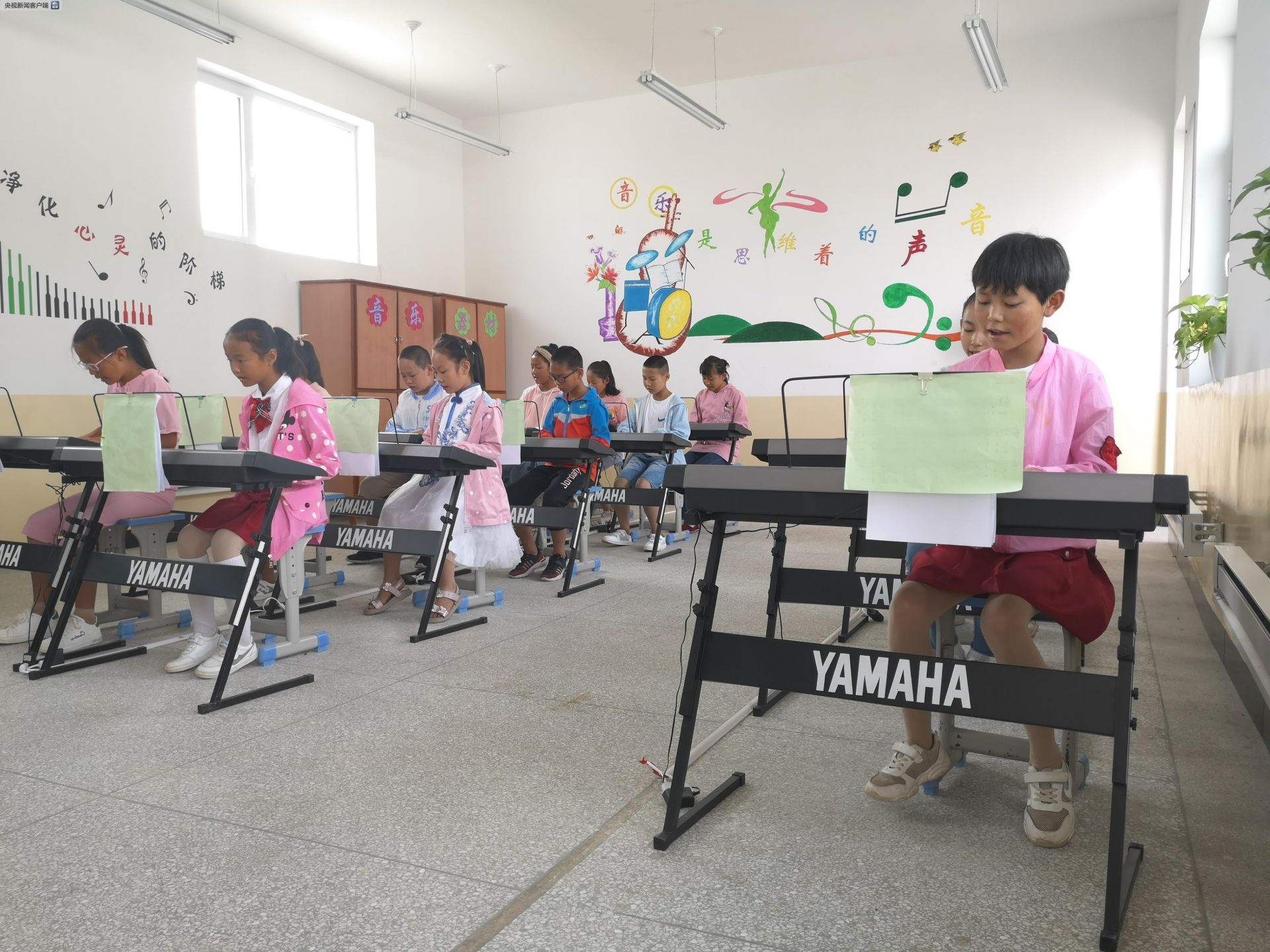 △富民小学去年刚刚开办,现有在校学生122人。正值暑假,学校为喜欢音乐的孩子提供了暑期兴趣班。15个孩子每天都在这间音乐教室里练习弹琴。(国广记者吴倩拍摄)
