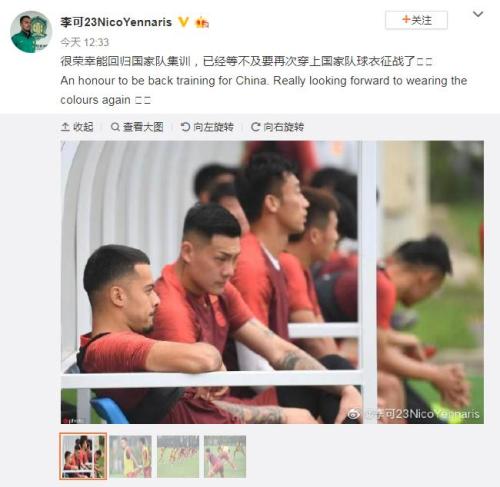 中新网8月27日电 27日,效力于北京国安的中国国脚李可更新了个人微博,谈到了自己再次入选国家队的感受,表达了自己对于再次为国出战的渴望。