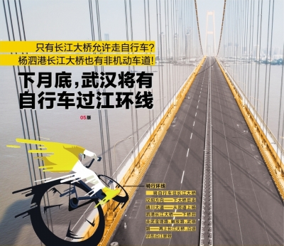 记者获悉,即将通车的杨泗港长江大桥设置了非机动车道,待这座大桥通车,网友们期盼的自行车过江环线将成为现实。